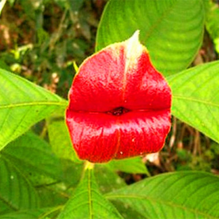 The Girlfriend Kiss Flower, scientifically known as Psychotria Elata, is a unique and intriguing plant native to the rainforests of Central and South America. Its distinct feature is the striking resemblance of its red bracts to luscious, pouting lips. These bright red bracts surround small, inconspicuous flowers, creating a whimsical and attention-grabbing display.